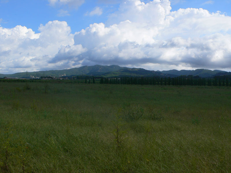 El paisaje es totalmente industrial a la salida del área metropolitana pero cambia mucho a partir de Montornés del Vallés, donde de pronto nos veremos rodeados de campos y bosques con el telón de fondo de la Sierra Litoral.