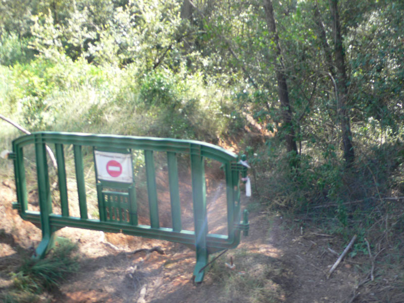 Antes de entrar a Sabadell, debemos estar atentos. Ignoramos el motivo pero el Ayuntamiento ha instalado una valla en medio del camino que prohibe el paso por un torrente que nos lleva a un paso estrecho. Es mejor buscar una pista alternativa, que las hay, aunque nosotros fuimos por allí siguiendo el track porque no vimos otra opción.