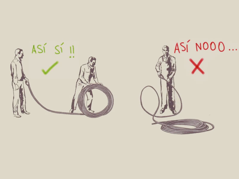 Siguiendo cronológicamente, también durante el desenrollado del cable podemos colaborar a hacer nuestra vía un poco más segura. El truco está en hacerlo como en la primera imagen de abajo. Así te aseguras de que el cable no quedará retorcido y podrás montarlo aprovechando toda su capacidad.