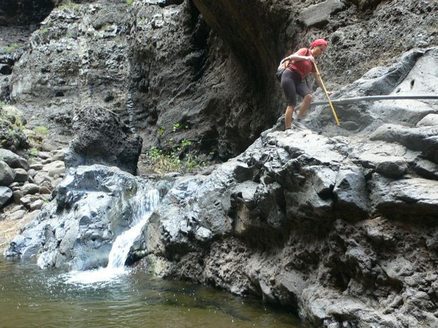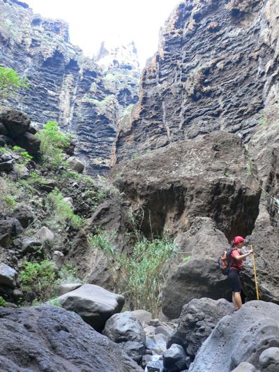Nosotros hemos bajado el barranco dos veces: una hace 8 años nosotros solos, y otra ayer, con nuestros niños de 8 y 10 años. Hemos encontrado que ahora el barranco tiene más desprendimientos y mucha más vegetación, por lo que lo de las 2 horas es un poco optimista incluso sin niños. Vegetación y desprendimientos hacen el camino más complicado, y algunas de las formaciones de roca volcánica más características ya no se ven por haber quedado ocultas bajo ambas. Aun así sigue siendo uno de los parajes más bellos de Tenerife, y al ser complicado no está masificado, lo que lo hace muy especial. Nosotros tardamos algo menos de 4 horas en hacerlo. Tenedlo en cuenta si bajáis con niños o si no estáis acostumbrados a andar.