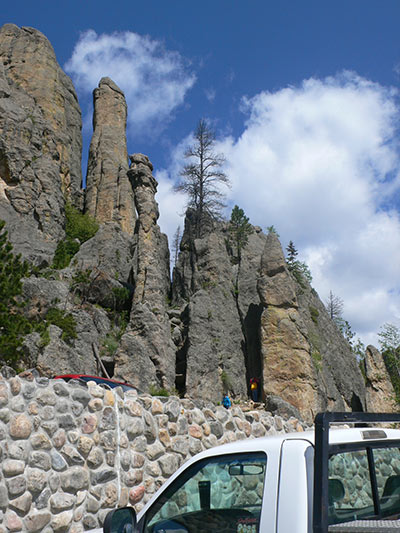 Una buena opción es tomar desde Keystone, población al este del Monte Rushmore, la Peter Norbek Scenic Byway -16A-, una carretera espectacular cortada en la roca y con asombrosos puentes de madera. Por la Scenic Byway enlazamos con la Highway 87 que seguiremos hasta una sucesión de curvas muy cerradas poco antes de finalizar la subida. Veremos un estacionamiento a mano izquierda con los altos pináculos de Cathedral Spires a la vista al fondo a la derecha.
