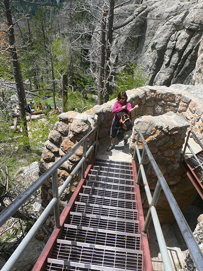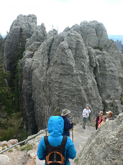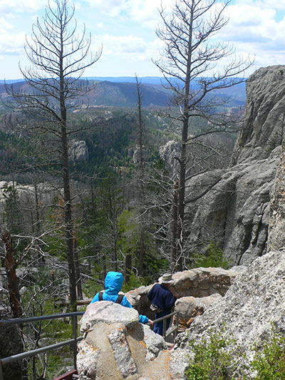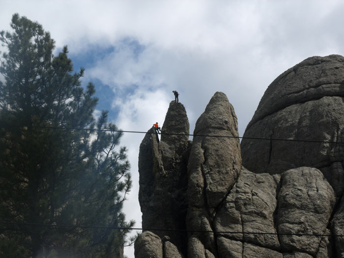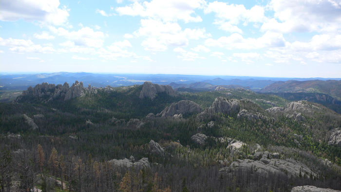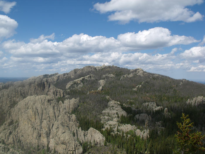 Recorrido de ida y vuelta al pico más alto de las Black Hills, el Harney Peak, con trepada a la modesta Little Devils Tower y previa visita a las formaciones graníticas de Cathedral Spires.