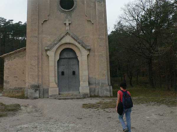 Luego siguiendo la pista más transitada y en una curva cerrada nos dirigimos a la derecha y dejamos atrás pequeñas masías destacando el "Mas de Garrigons", el "Mas de Terrers" y una gran granja de aves. Llegamos a la ermita de Sant Andreu de Gurb, inicio oficial del PR. Una buena opción si se va en coche particular es empezar el sendero aquí. Pasaremos por la ermita de Sant Roc, construcción del siglo XIX que cuenta con unos bonitos retablos de Pilarín Bayés en su interior.