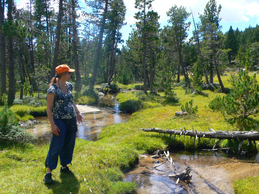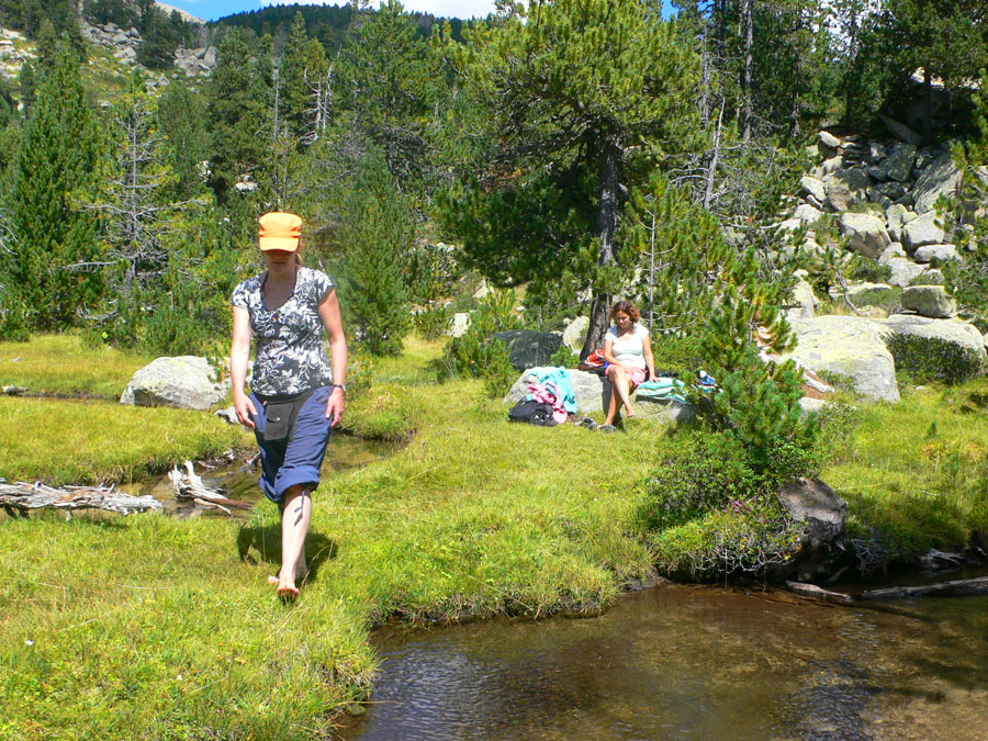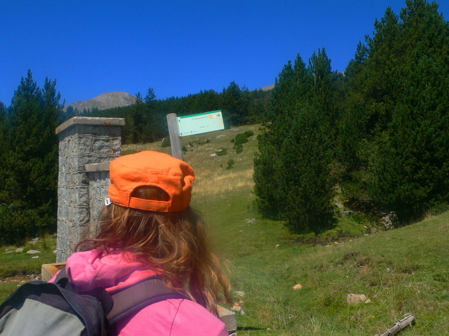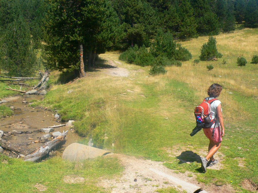 Salimos del refugio de Cap del Rec siguiendo los postes verticales del sendero 21. 45 minutos de subida con poco desnivel y resguardados del calor del verano por la sombra del bosque. A nuestro costado serpentea el torrente del Orri que cruzaremos en varias ocasiones a medida que vamos subiendo.