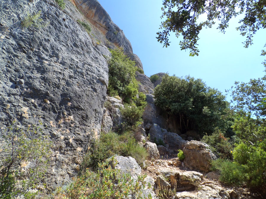 Empezamos la salida. Desde la parte de atrás de la sede del parque tomamos el GR-171 que sube hacia la sierra Major. Después de un par de curvas cerradas, encontraremos un desvío a mano derecha, un PR señalizado al grau dels Barrots y al grau del Carrasclet que seguiremos. El camino planea primero y después sube al pie de las paredes escarpadas de la cara sur de la sierra.