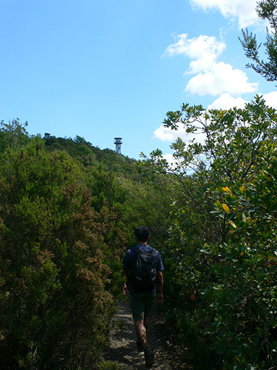 Superada la monotonía de calles asfaltadas, sólo alterada por detalles anecdóticos como un jardín repleto de gallinas y una torre modernista de aspecto post soviético, llegamos a la altura del Tibidabo, que veremos a unos cientos de metros. Con la Torre de Collserola a la vista nos desviamos hacia la fuente de la Salamandra -atentos a este desvío-, momento que salimos de la pista principal y damos con la tranquila cara norte. Un corto tramo que nos acerca a una de las principales arterias de Collserola, la carretera de l'Arrabassada. Nos encontramos un poco más allá de la mitad del camino, bueno momento también para planificar un escape hacia la carretera de les Aigües y regresar a la ciudad.