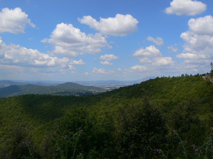 Seguimos en el Papiol. Para llegar a la cima del Puig Madrona superamos uno de los desniveles más pronunciados de la excursión, unos 300 metros por un cerrado sendero. Merece la pena este primer esfuerzo para contemplar las vistas a Montserrat, Sant Llorenç del Munt y el lejano Tibidabo, que tendremos a tocar más adelante.