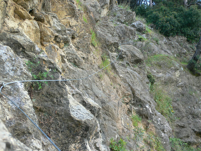 Todavía nos falta afrontar una corta caminata por el polígono industrial Coll de Montcada y dar un rodeo por una ancha pista cerca de la Pau del Turó, donde un monumento rememora una antigua leyenda. -Un corto paso equipado flanquea una de las paredes de la Pau del Turó, paso totalmente opcional-.