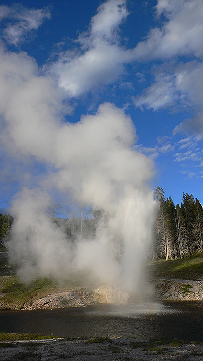 Para los géiseres hay que ser muy metódico y paciente, con intervalos irregulares de erupción -por suerte con pizarras actualizadas a diario con predicciones- podemos planificar un tour para contemplar una de estas perlas en acción. Si pensamos en la irregularidad del Stemboat Géiser del Norris Bassin, el más potente del mundo, estos parecen un opción mucho más asequible.