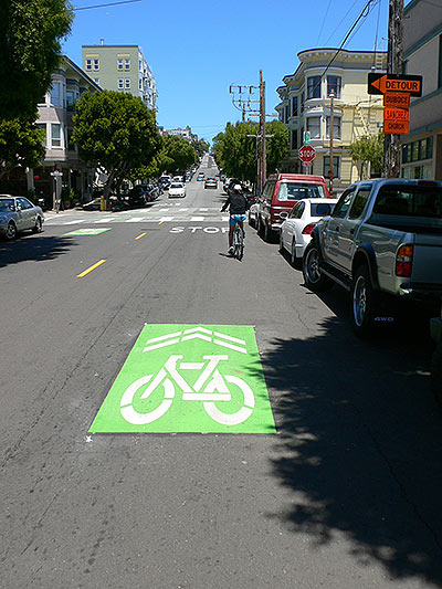 De South Beach muy cerca del Financial District entramos por la 16th st. al corazón de Mission Dolores el barrio fundacional de la ciudad. Aunque hay tramos de subida un carril bici bien señalizado permite encontrar el itinerario idóneo para evitar las laderas más empinadas.