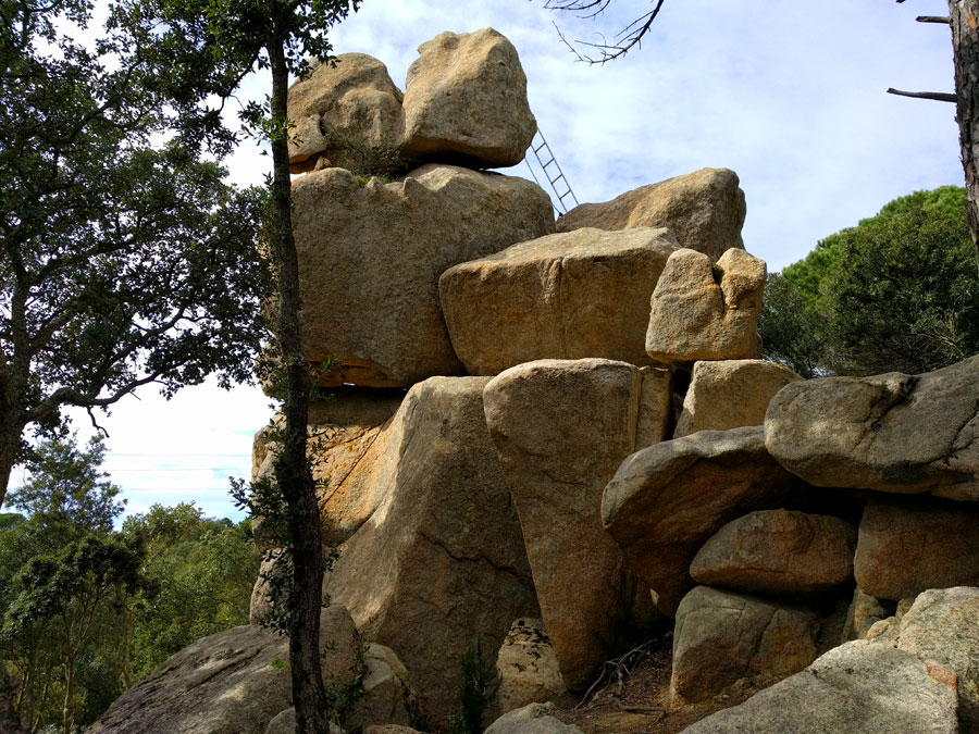 La Pedra sobre altre es una formación natural de varios bloques graníticos apilados que veremos emergiendo del bosque al final del recorrido. En su base hay una cripta megalítica que se puede visitar -con un geocaché al fondo-.