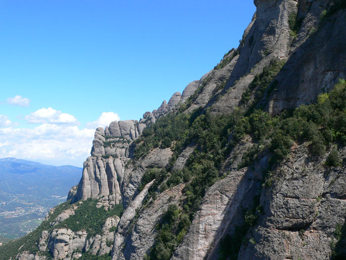 Estamos muy cerca de l'Hort del Malany al pie de les Roques del Salt de la Nina y tenemos la pared oeste de Sant Jeroni a la vista. El ambiente es espectacular.