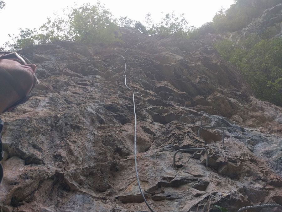Iniciamos la subida por el tramo verde de la vía ferrata del Beyu y tomamos la variante roja que tiene un desplomado corto pero más complicado de lo que parece.