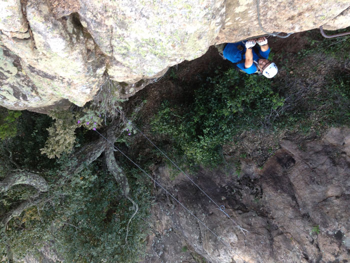 Subiendo por la cuerda anudada a una amplia aguja con vistas antes de la Roca Llisa -opcional-