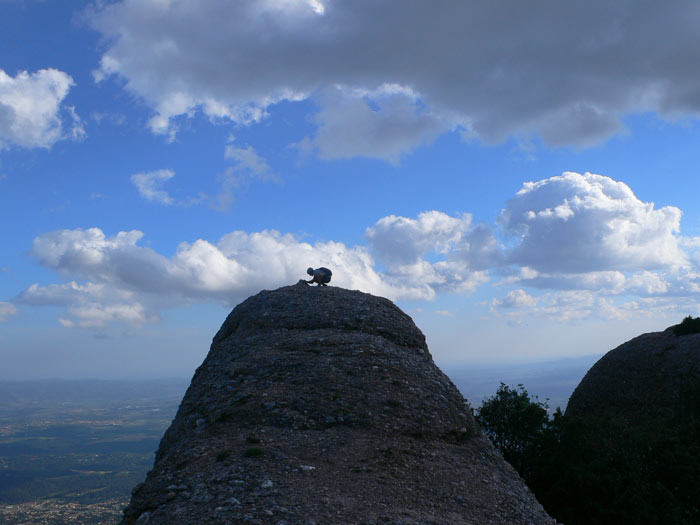 Kalimero amb el material instalat ja podries baixar pero el pas és força exposat, et recomano portar corda per rapelarlo si una vegada en el lloc no ho veus clar i una baga curta per asegurar-te a la cadena en cas de voler descansar. El casc es imprescindible si vas a Montserrat. Vagi bé!