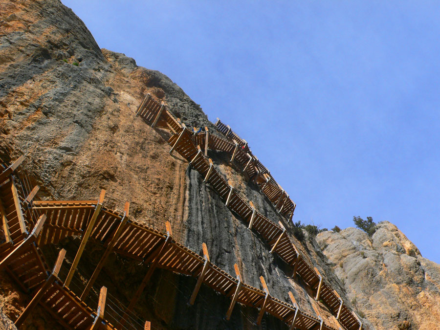 Si la ida es fácil el regreso es más exigente. Deberemos descender por las pasarelas, un tanto más impresionante que la ida y nos quedará subir los casi 300 metros de desnivel acumulados.
