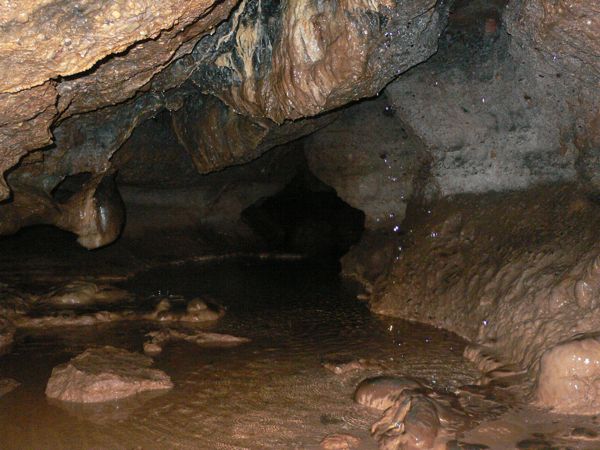 Una vez equipados con la luz pertinente explorar el interior de la cueva nos traerá poco más de 30 minutos. Sólo entrar tenemos un pasillo a nuestra izquierda, pero lo mejor es continuar hacia adelante y después seguir una ancha curva hacia la izquierda. En todo momento avanzamos semi agachados y el agua y el barro son omnipresentes. Nos adentramos en la oscuridad del lugar y aparece una nueva bifurcación a la izquierda, visitable, mientras el agua nos va envolviendo con su sonido. No esperéis encontrar grandes formaciones ni estalactitas espectaculares, pero en el lugar se respira un cierto misterio no sé si alimentado por su tétrica leyenda... La cueva se va estrechando hasta que ya se hace difícil avanzar. Nosotros hicimos media vuelta pero con ganas de explorar se puede visitar un buen trozo más. De hecho si al entrar continuamos de frente podemos explorar algunas zonas estrechas dónde es necesario arrastrarse.