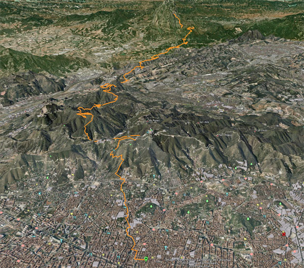 El itinerario escogido por la UEC recorre por lo general pequeños senderos y tiene su mayor acierto en la sierra de Collserola que la cruza por caminos poco concurridos y casi sin tocar el asfalto. Lo mismo pasa al final del itinerario, que dando rodeos por la zona del Coll d'Olesa nos descubre parajes interesantes a la sombra del macizo de Montserrat. Las fuerzas ya flaquean a esas alturas, el paisaje es el único consuelo que nos queda después de 63 kilómetros y más de 2.500 metros de desnivel positivo acumulado.