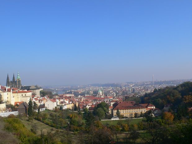 Descendemos la colina Petrín hacia el río Moldava