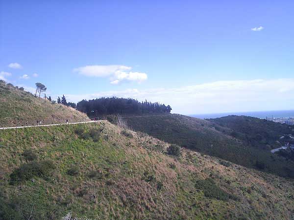Una vez en el Mirador, podemos dar media vuelta o continuar el paseo por detrás del repetidor de Sant Pere Màrtir donde el camino sigue paralelo al 'Passeig de les Aigües'. La ruta es fácil pero no nos libraremos de un par de subidas fuertes. Pasaremos por un puente y después de descender, el camino gira a mano derecha. Llegaremos a la Fuente de la Mandra, muy concurrida, y subiremos por la pista asfaltada hasta encontrar un camino de tierra que ya no dejaremos. Aquí se pueden ver los estragos de las orugas (procesionaria) en los árboles más jóvenes, algunos de ellos ya totalmente muertos (el peligro de salir con algunas ronchas es elevado en verano). Al final llegamos a una pista asfaltada que descenderemos para llegar a la carretera de Vallvidrera.