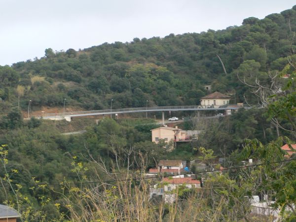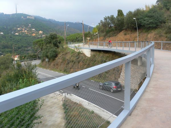A medio camino, un puente inaugurado en 2008, permite cruzar la Carretera de Vallvidrera con total seguridad. De aquí al Mirador dels Xiprers tendremos buenas vistas al final de la Diagonal y al Nou Camp.
