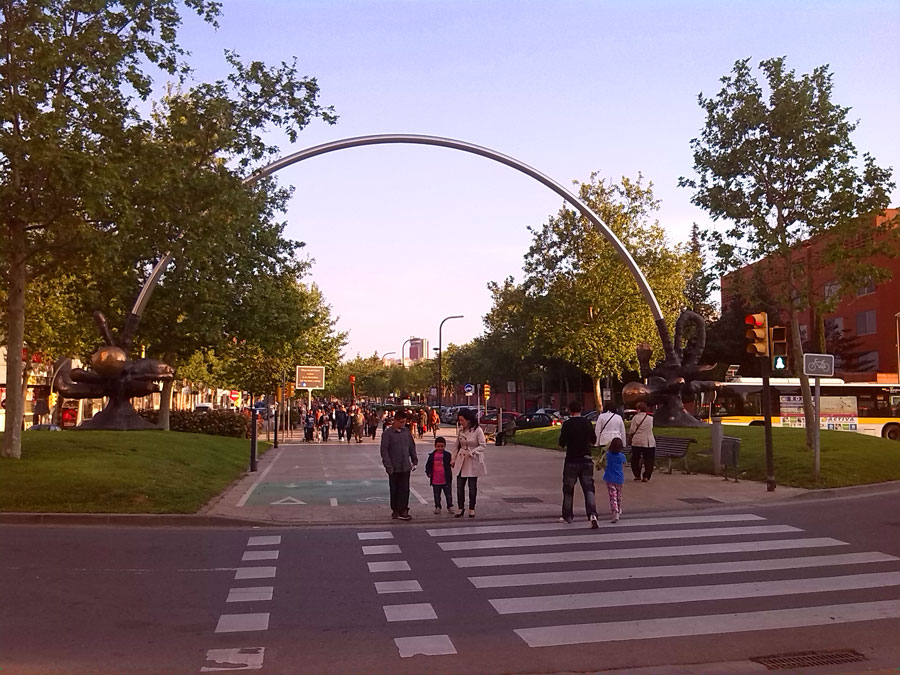 Al salir del Rec Comtal seguiremos de frente por la calle d'Oristà y no la dejaremos hasta el túnel de doble arco que cruza las vías del tren. Después del túnel a la izquierda en el inicio de la subida del puente de Vallbona reencontraremos la señalización de la Ronda Verda.