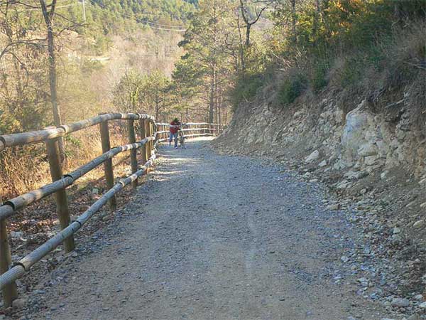 Pronto llegaréis a la antigua estación de Sant Joan, en donde hay un monumento al antiguo ferrocarril además de una zona de esparcimiento y una caseta de información. Dos quilómetros más adelane, en Torralles, estación de enlace de las vagonetas de las minas de hierro con el ferrocaril, la vía verde termina, pero aún tenemos la opción de continuar y subir por el Camí natural de Torralles. Deberéis superar 3 rampas de gran pendiente, la primera es la más difícil y la que probablemente haga desistir a muchos, pero las dos siguientes son un poco menos duras y luego el camino no tiene prácticamente desnivel.