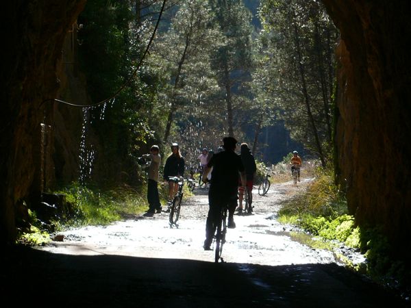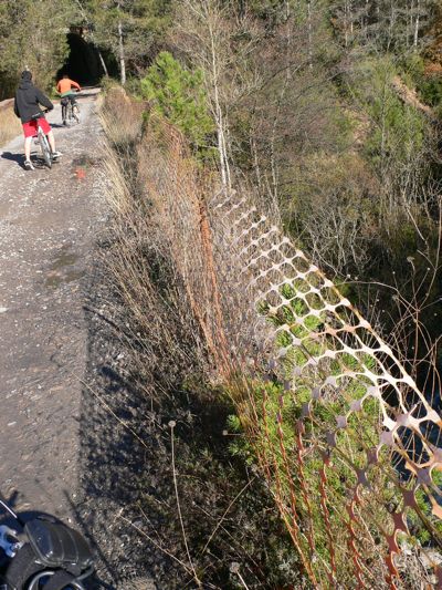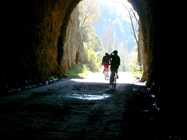 Podría ser una muy buena ruta para pasear tanto a pié como en bicicleta pero el inconveniente principal es que PUEDEN CIRCULAR VEHÍCULOS por ella. No es agradable encontrarse con un coche durante la ruta (sobretodo si vas con críos) y mucho menos en el interior de uno de los túneles. Una buena iluminación es imprescindible dentro de ellos porque te quedas totalmente a oscuras y en algún caso se ven pequeños desprendimientos por falta de mantenimiento.