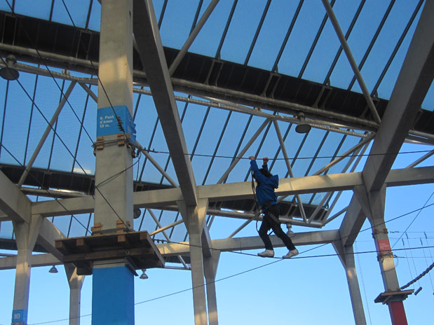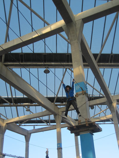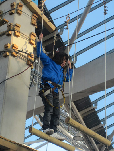 Bajo los paneles solares de la zona del Fòrum, en Barcelona, la gente de Bosc Urbà Aventura han equipado un espacio antes escasamente utilizado con tres circuitos de aventura que nos permiten disfrutar de este tipo de itinerarios sin salir de la ciudad.