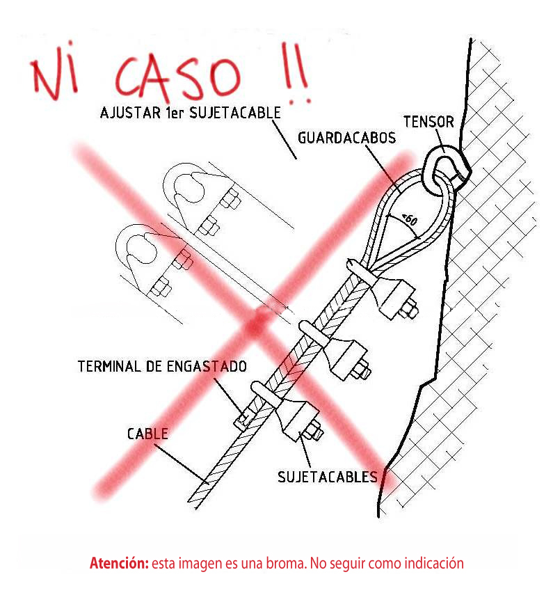 Se me hace la boca agua pensar en esos miles de kilos de fuerza intentando extraer nuestro tensorcillo mal puesto, ahí ese sujetacables aflojándose solitario a 2cm del extremo del cable. Lujo.