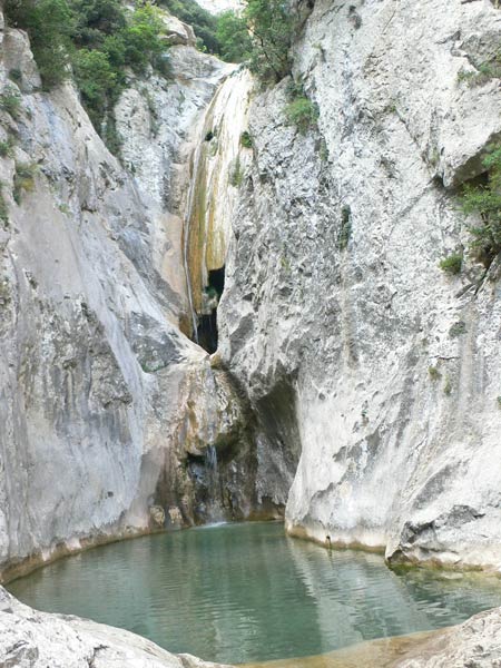 Para cerrar la ruta podemos continuar de frente y dirigirnos al Salt del Brull, aunque en verano no ofrece su mejor aspecto. En el último tramo deberemos caminar directamente por el cañón saltando de piedra en piedra y sorteando pequeñas pozas. Volviendo hacia atrás podemos hacer un último baño en el amplio Gorg Blau, que alimentado por una ancha cascada es el mejor sitio de baño de toda la riera.