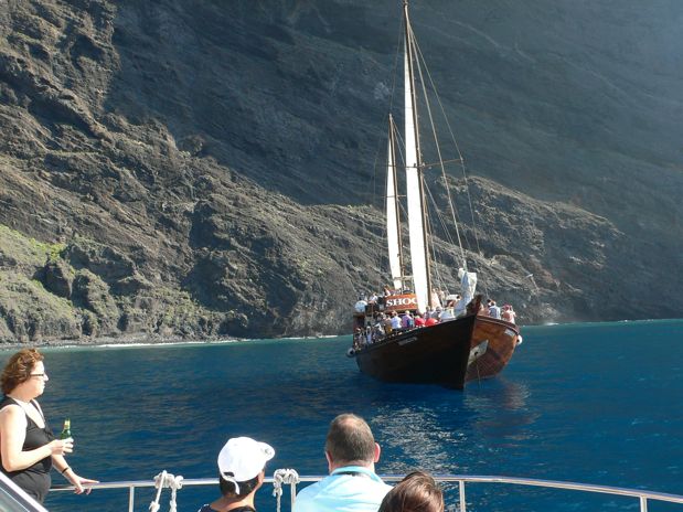 Empezaremos a escuchar a lo lejos el rumor de las olas, pero todavía tardaremos en dar con la playa de guijarros de Masca, perfecto mini embarcadero e impresionante abertura del acantilado de los Gigantes. Si estamos esperando nuestra embarcación, podemos darnos un buen chapuzón en la zona protegida junto al amarre, siempre lejos de las paredes dónde hay cierto peligro de desprendimientos.