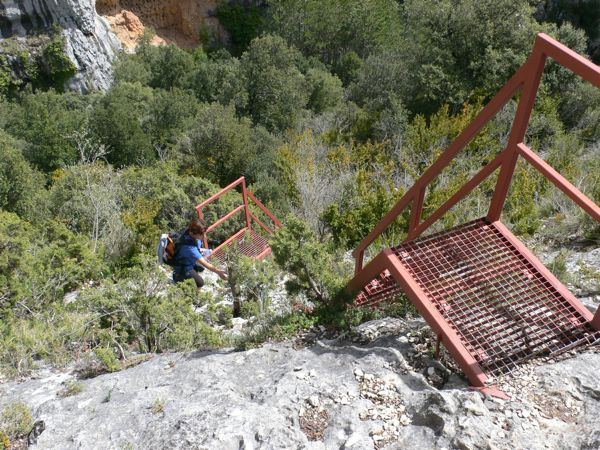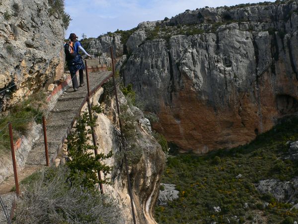 Dejando atrás Quizans afrontaremos la última subida junto al Tozal deros Tiestos, con grandes vistas a toda la sierra de Guara, y la bajada en busca de la entrada al barranco de Chimiachas. Adentrarse en este profundo cañón es como entrar en otra época por lo solitario y agreste del camino. Atención aquí al desvío indicado a la derecha que nos saca del barranco, si continuáramos bajando sería necesario equipo para rapelar.