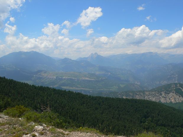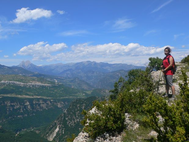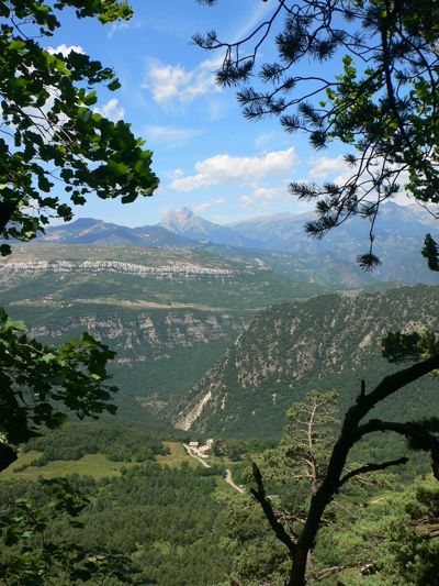 Cerca de la Foradada y en los límites del cortado tenemos grandes vistas sobre los Riscos de Vallcebre y el Pedraforca