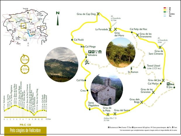 El sendero es la actividad perfecta para completar el día después de recorrer la cercana vía ferrata de Les Roques de l'Empalomar, una de las vías catalanas mejor valoradas.