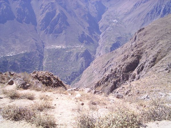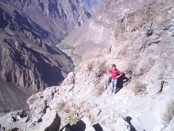 En 2005 visitando la hermosa ciudad de Arequipa nos decidimos a explorar el hasta hace poco cañón más profundo del mundo, el cañón del Colca (recientes mediciones le conceden este honor al también peruano cañón de Cotahuasi). Lo habitual es contratar un guía en la misma ciudad, que se encarga de los desplazamientos en bus local, del hospedaje, de la entrada a las aguas termales, etc... Pero casi lo mejor es contratar el guía directamente en Cabanaconde, pueblo dónde empieza la excursión, pues a parte de ser mucho más económico siempre ofrecen excursiones más variadas y otras opciones que no existen en la capital.