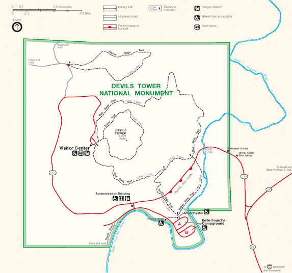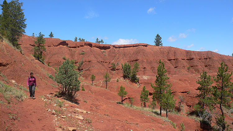 Indicado com Red Beds Trail, nombre que le viene del característico color rojizo del terreno que encontraremos cerca de los cortados en el río Belle Fourche, desciende hacia el este unos 150 metros para volver a subir por delante de la cara sur de Devils Tower, la más prominente y la protagonista de los grabados de las leyendas indias.
