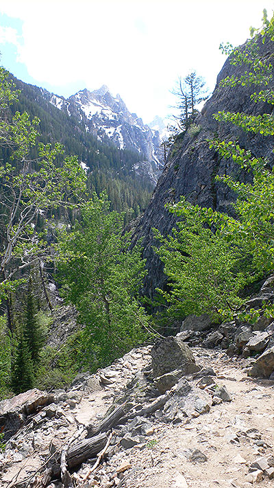 Merece el esfuerzo hacer la subida hasta el Observation Point, ganaremos poco menos de 100 metros de altura por encima del lago y disfrutaremos de amplias vistas al este. Estaremos en la entrada del Cascade Canyon una de las arterias senderistas de la zona y la aproximación al techo del parque la cima Grand Teton de 4.197 metros, reto alpinístico que queda de momento fuera de nuestro alcance.