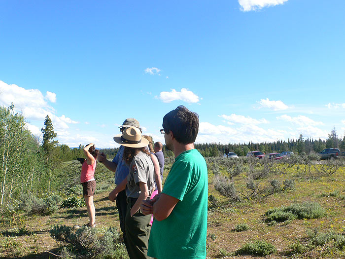Con las Tetons al fondo dejamos aparcado el coche en la carretera para hacer un avistamiento.