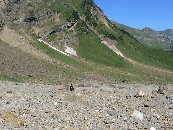 El mismo H.R.P. nos servirá de excusa para realizar nuestro retorno circular, justo detrás del Hotellerie du Cirque encontraremos un desvío indicado a Cabane de Pailla y Gabarnie, que continua por la ladera de la montaña sin perder desnivel hasta dar con el torrente de la Pailla, inicio del descenso. El sendero discurre elevado sobre La Prade y el amplio valle que da a Gavarnie, cerramos la excursión con unas vistas sin desperdicio.