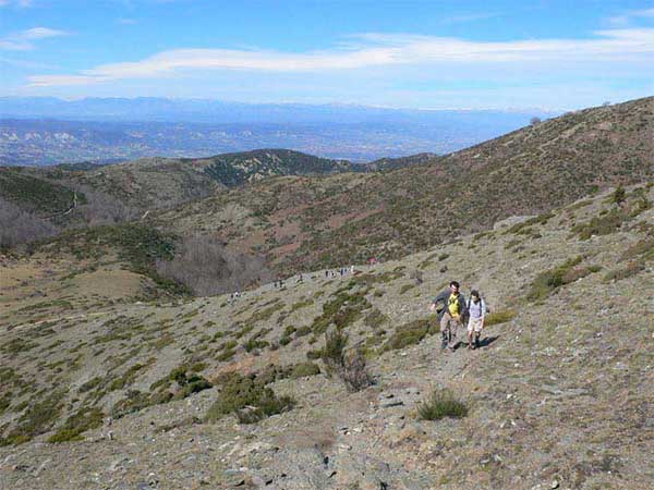 Sólo nos separa de la cima el 'Turó de l'Estanyol' que dejaremos a nuestra derecha y el extenso collado dels 'Llops' buen sitio para descansar y coger fuerzas. Es habitual que el viento azote el segundo pico más alto del Montseny, por lo que la zona de la cruz es un poco desapacible aunque las vistas invitan a quedarse un buen rato. Podemos contemplar al norte el Pirineo Oriental y también más cerca los escarpados 'Cingles del Collsacabra', al sud se puede ver hasta Barcelona y al oeste la plana de Vic.