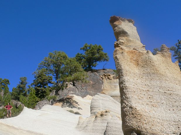 Pronto llegaremos a nuestro objetivo que destaca en el fondo de un barranco con sus esbeltas formas de arena blanca. Protegido medioambientalmente se recomienda observarlo de lejos, desde el mirador, aunque es posible acercarse por un sendero descompuesto que baja al barranco.