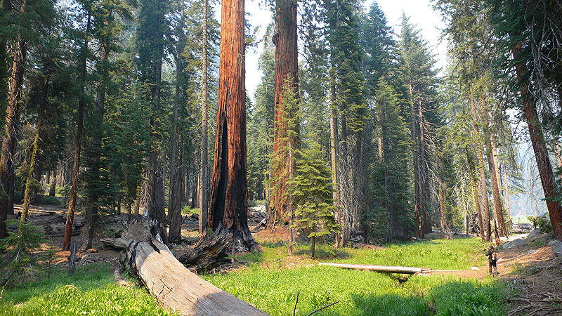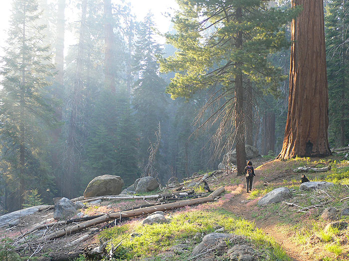 Dejaremos nuestros sueños del High Sierra para seguir al norte por el solitario Trail of the Sequoias, bien señalizado con un pictograma amarillo y la figura de una secuoya. Es el momento ideal para esperar la visita de la fauna autóctona que incluye el oso negro. No tuvimos la suerte de verlo pero sí nos cruzamos con grupos de ciervos y atrevidas tamias -ardillas ralladas-. Por supuesto nos iremos cruzando con grandes secuoyas que no tienen nada que envidiar a las más grandes del bosque.