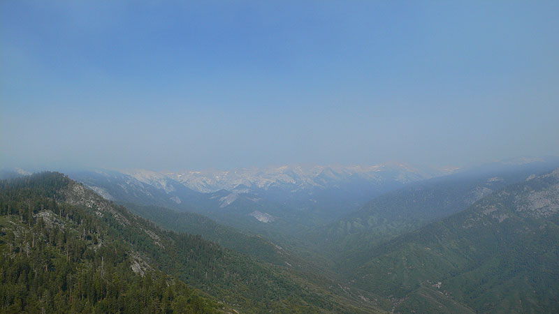 Nosotros decidimos regresar a pie. Desandamos un tramo del camino hasta dar con el inicio del High Sierra Trail, arteria senderista que enlaza en los límites del parque con el John Muir Trail y el Pacific Crest Trail ambos puerta de entrada al muy cotizado Mt. Whitney, techo de los E.E.U.U. contiguos. Desde aquí queda a unos 5 días de camino a pie.