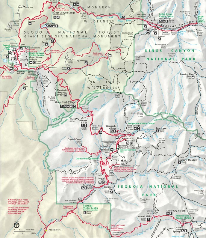 Los accesos al parque son por la carretera CA-180 al norte si venimos de Fresno y por la carretera CA-198 al sur si venimos de Visalia o los Ángeles. Otra alternativa es entrar por la carretera CA-245 más directa.