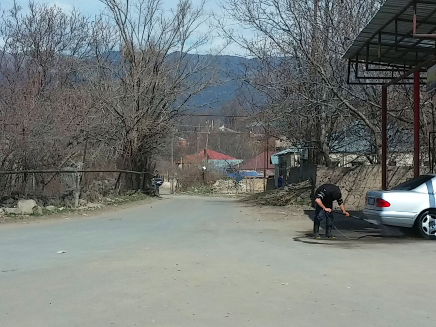 Visto el templo volvemos a la Oficina de Turismo tomando la calle principal. Justo es salir a la derecha de la escalera que hemos subido. Giramos a la derecha tras encontrarnos de nuevo con el cartel Khosrov Forest - State Reserve.