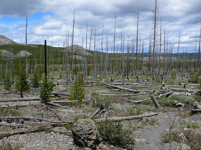 Sendero que nos conduce al géiser Imperial. El bosque se recupera poco a poco.