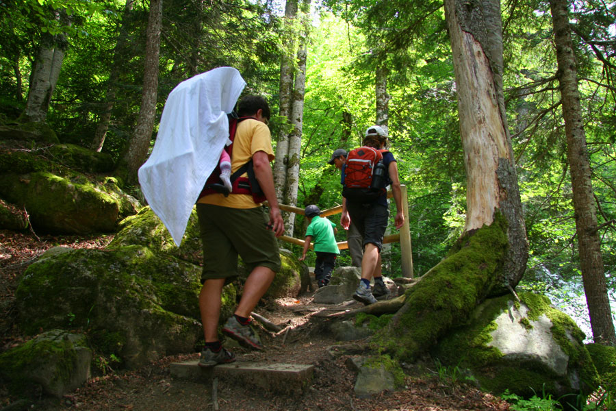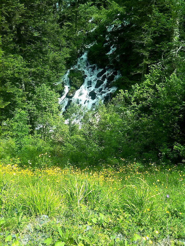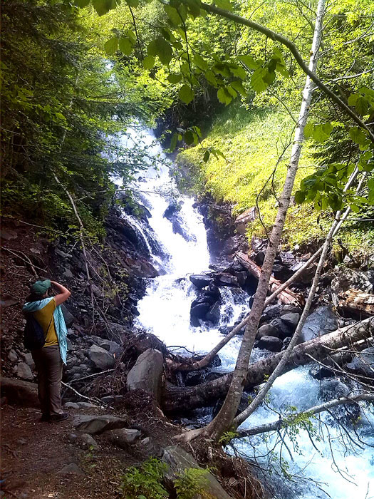 Antes de comer o por la tarde se puede hacer una corta vuelta para conocer la zona, es apta para todos, apenas tiene desnivel. Podemos empezar la visita en el modesto salto de agua del Pomèro. Lo encontraremos encima de la zona de las Cabanes -indicado-.
