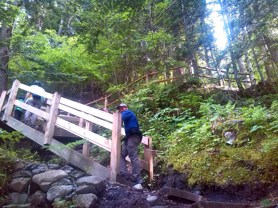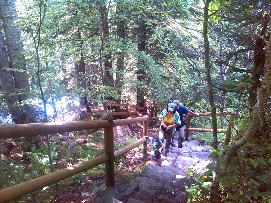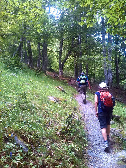 Un poco más abajo cruzaremos el río por un puente de cemento. El entorno ha sido condicionado con escaleras de madera y barandillas que facilitan la subida por el bosque de hayas. Se agradece en esta zona que normalmente rebosa humedad.