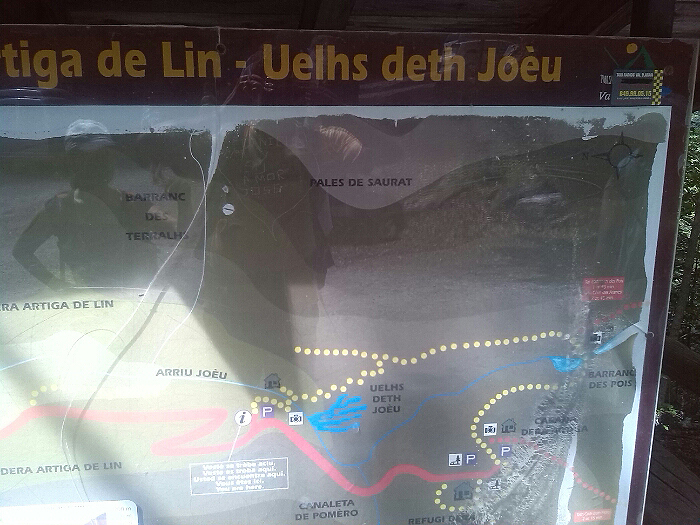 Bajaremos por la carretera que hemos subido en coche, casi no tiene tráfico, en busca de la surgencia dels Uelhs deth Joeu, curiosidad geológica que podremos observar desde un mirador. Las aguas que aparecen aquí vienen directamente del glaciar del Aneto alimentando primero al Joeu y después al río Garona.